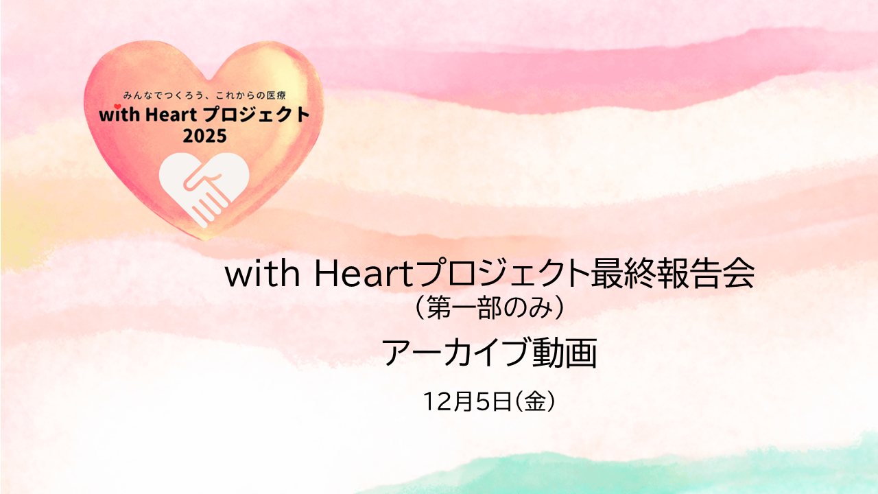 2025年12月5日に開催した、「with Heartプロジェクト最終報告会」(第一部のみ)のアーカイブ動画を公開しました。